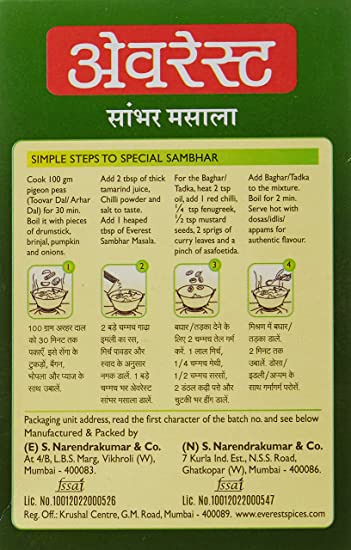Everest Sambhar Masala is one such masala to include the genuine taste of a usual tasty south-Indian sambhar at home.